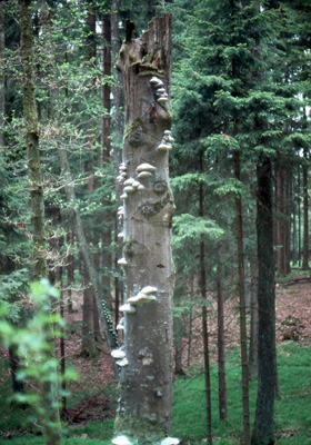 To add to the overall complexity, in a late-successional, indigenous forest, a live old tree eventually becomes injured and/or sickened with disease and begins to die. How the tree dies determines how it decomposes and reinvests its biological capital (organic material and chemical elements) back into the soil and eventually into the next forest.