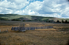 So I started digging, and I dug, and I dug, and I dug. It was now three o'clock in the afternoon; the gate swung, and I felt good. There was just one problem. The ground under the gate sloped downhill into the barn yard, and, while the gate swung downhill okay, it now sagged so much that there was a vertical two to three foot wall of soil on the gate's up-hill side that arrested it in its closed position. I was in the midst of contemplating all this, when Jim rode up. Sitting on his horse, he quietly rolled a cigarette as he surveyed the situation.