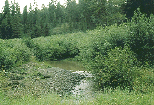 The ride was magnificent as the retiring moon gave way to the rising sun, which spread its warmth over the land. The odor of dew drying off of sagebrush mingled with the odor of horses. Magpies chattered. As we passed upward out of the sagebrush, we entered golden-yellow groves of white-stemmed quaking aspen only to leave them behind and enter a forest of dark-green lodgepole pines. Scattered within the forest were open meadows, called "parks," often with small streams meandering through them. The streams, choked with beaver dams, were lined with yellowing willows and patches of golden aspen.