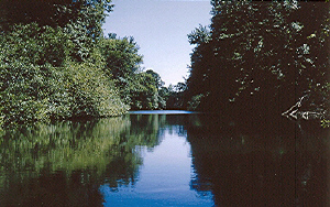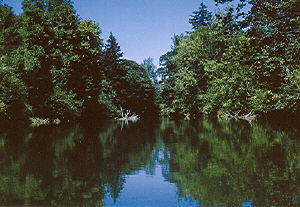 The river's surface was peaceful and quiet in Summer (left), its banks lined with willows in which deer liked to rest during the day (right).