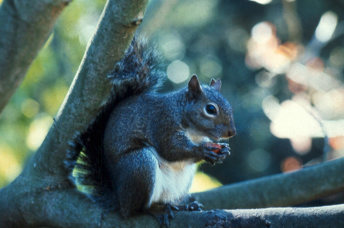 A Douglas squirral, which is also known as a "chickaree." Photograph courtesy of Ronald Roweder, Oregon Department of Fish and Wildlife.