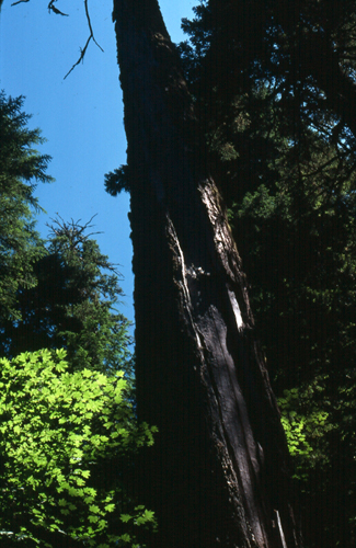A "cold" lightening strike on an old Douglas-fir leaves its characteristic spiral insignia.