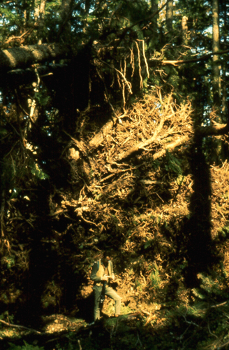 Rootwad of a recently fallen Sitka spruce.