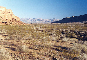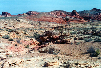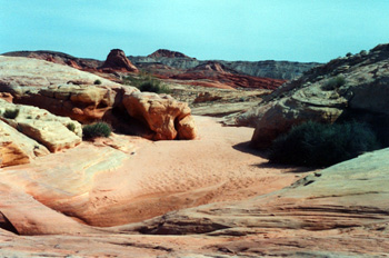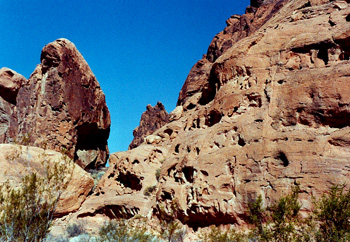 By early May, the sun's intensity increases appreciably and our view of the Valley becomes surrealistic, shimmering in the day's growing heat. Now the name, "Valley of Fire," takes on a meaning apart from the red of the Aztec Sandstone, and our visitations ceased until late Autumn.