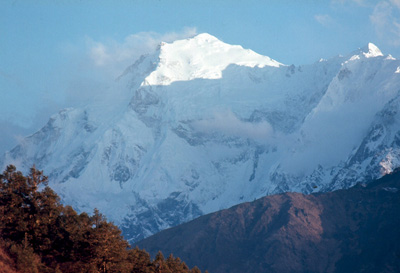 Lang Tang (27,000 = 8,230 meters) from an elevation 11,500 feet (3,505 meters) on Phulung Ghyang, Newakot District, Nepal, in May 1967, and a fifteen-foot (4.5-meter) snowpac in the high Cascade Mountains of Oregon in March 1958. The Greater Himalayas, for example, hold the largest mass of ice outside the Polar Regions and are the source of the ten largest rivers in Asia, and the glaciers are melting rapidly. The cascading effects of rising temperatures and dwindling amounts of ice and snow in the region are affecting such things as availability of water (amounts, seasonality), biodiversity (endemic species, predator-prey relations), shifts in the boundaries of ecosystems (upward movement in tree-line and other changes in high-elevation ecosystems), and global feedback loops (shifts in the monsoons and loss of soil carbon). Climate change will also increase the uncertainty in water supplies and likely reduce agricultural production for human populations across Asia.2