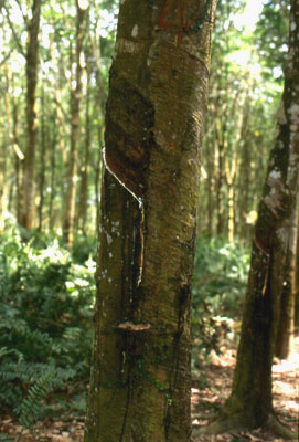 Rubber tree plantation in Malaysia. On the other hand, roads and streets are paved in housing developments within water catchments surrounding a community, thereby creating an impervious coating over the surface of the land. This impervious layer prevents water, both rain and melting snow, from infiltrating into the soil, where it can be stored, purified, and can recharge existing aquifers and wells. Instead, the water remains on the surface of the roads and streets, where it mixes with pollutants that collect on the pavement. Because paved roads and streets are lined with curbs and gutters, the now-polluted water is channeled from the paved surface into a storm drain. In addition, each house has an impervious roof that collects water and channels it into gutters along the edge of the roof. Upon collecting water, the gutters channel it, more often than not, out to the street, where it joins water from the street going down the storm drain. It is then conducted either directly into a sewage treatment plant or directly into a ditch, stream, or river. In any event, the water is not usable by the local people. Beyond that, the storm water either adds to the cost of running the treatment plant, where it must be detoxified, or it pollutes all the waterways through which it flows, from its point of origin into the ocean. The effect of roads, streets, parking lots, and the area covered by houses, all of which eliminate the infiltration of water, is cumulative. Enough roads, streets, parking lots, and roofs over time can alter the soil-water cycle as it affects a given community. Remember, the quality and quantity of water is an ecological variable, irrespective the fact that many linear-thinking economists and "land developers" consider it an economic constant. Even if water was a constant, a variable is introduced with construction of a single road. Constructing and maintaining multiple roads only compounds the variable. In addition, intensive forestry, such as clear-cutting, alters the water regime that affects how the forest grows. In this way, a self-reinforcing feedback loop of ecological degradation in a water catchment is created, altering the soil-water regime that, in turn, alters the sustainability of the forest that, in turn, affects the soil-water regime in a never-ending cascade of cause and effect. Eventually, the negative effects are felt in those communities that are dependent on a given water catchment or drainage basin for their supplies of potable water.